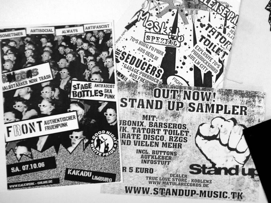 Eine kleine Festivallandschaft entstand – Leute organisierten kleine alternative Festivals vor Ort. Anfangs sehr DIY und selbstorganisiert, später orientiert an professionellen Festivals. Die komplett selbstorganisierten Sachen sind weniger geworden und die semi-professionell organisierten Sachen sind mehr geworden. Eine Ausdifferenzierung, Professionalisierung fand statt. Es wurde auch unpolitischer. Die Bands, die nachkamen, sammelten Erfahrungen in Räumen, wo Securities für Sicherheit sorgten – sie mussten das nicht selbst machen. Das verlagert den Schwerpunkt. Wenn du selber immer schauen musst, wie kommen wir hier mit unserem Bandbus wieder weg, dann prägt das wahrscheinlich auch die Inhalte deiner Lieder.